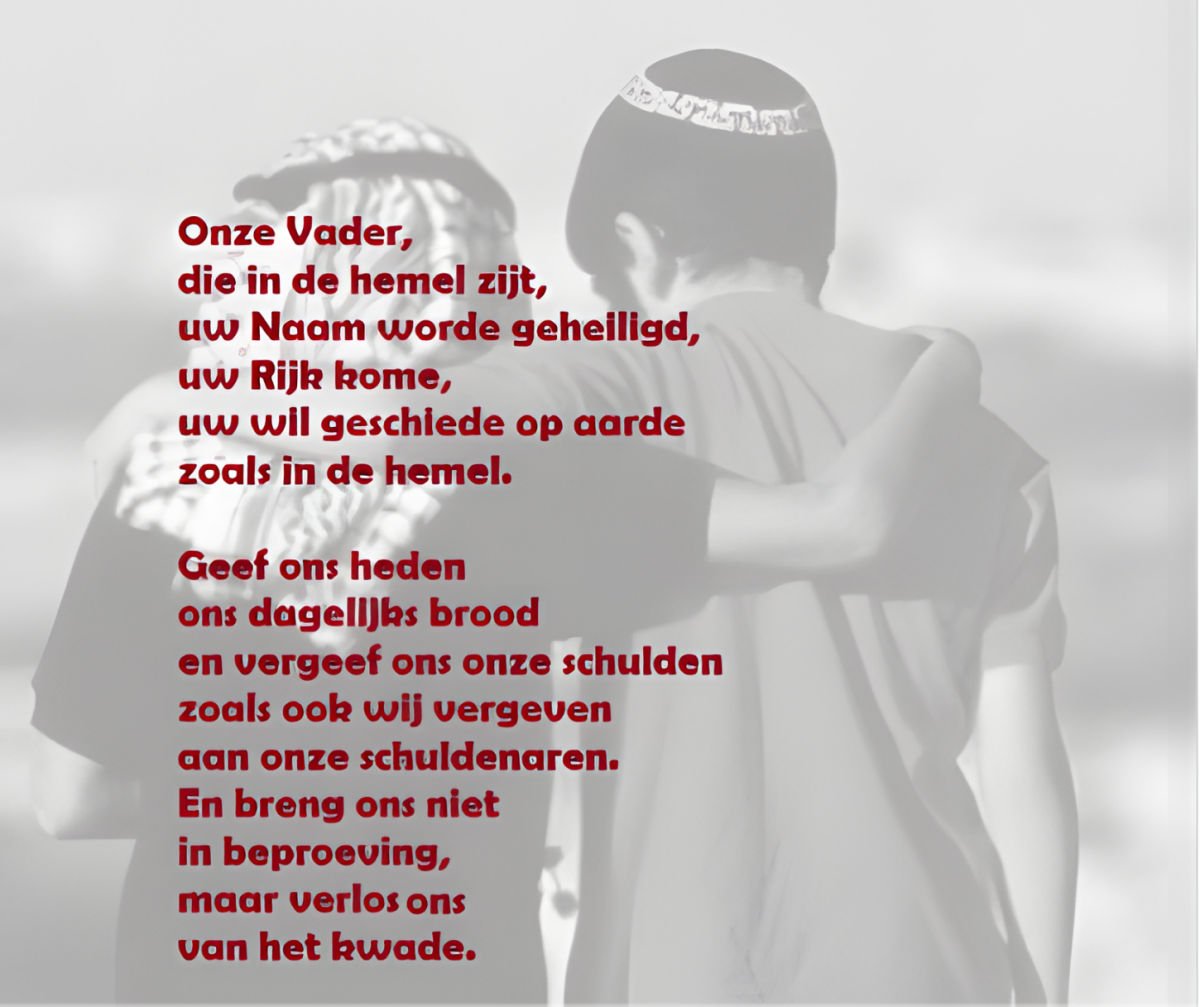 Ze neemt de orante-houding aan, de houding die wij aannemen als we in de eucharistieviering het Onzevader bidden, een gebed dat je wellicht stilaan van buiten kent. Ga dan in je kamer. Neem er een ge-aarde houding aan, hef je armen en handen in de orante-houding en bid met je ogen dicht het Onzevader, het gebed dat Jezus ons leerde.